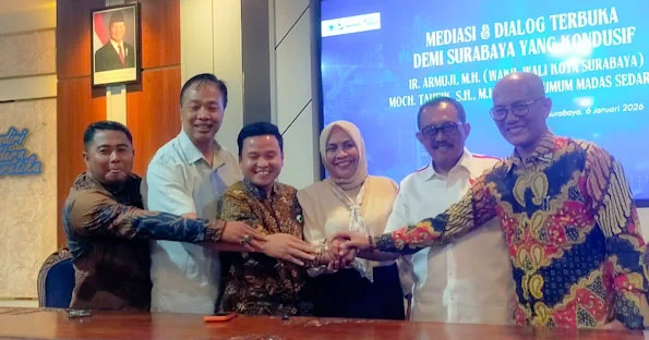 Surabaya, 07 Januari 2026– Polemik penyebutan nama organisasi masyarakat Madura Asli Sedarah (Madas) yang sempat memicu kegaduhan publik akhirnya berujung pada langkah rekonsiliasi. Wakil Wali Kota Surabaya Armuji secara terbuka menyampaikan permohonan maaf kepada jajaran Madas dalam pertemuan mediasi di Universitas dr Soetomo (Unitomo), Selasa (06/01/2026).