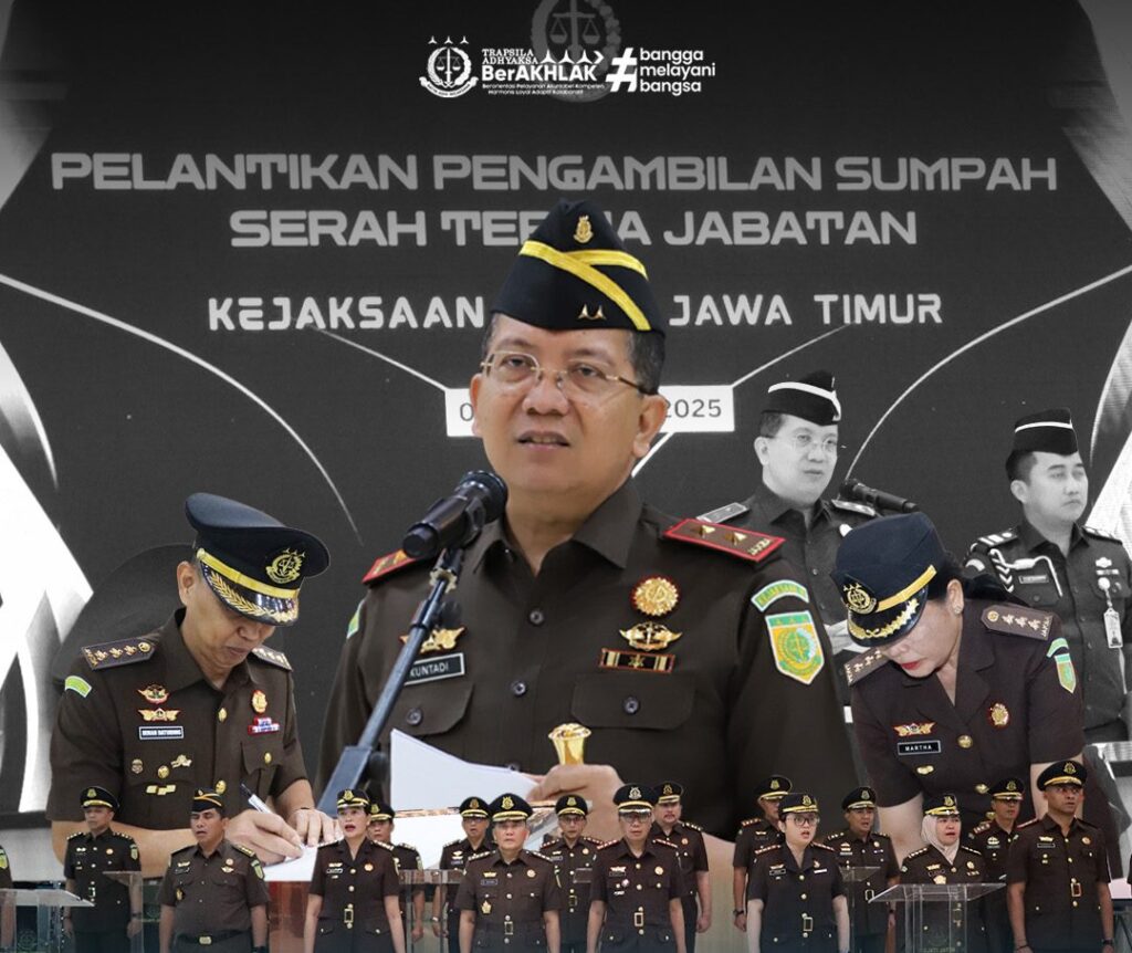 Dalam sambutannya, Kajati Jatim Dr. Kuntadi, menegaskan bahwa pelantikan tersebut merupakan titik awal untuk meneguhkan kembali tanggung jawab moral dan profesional.