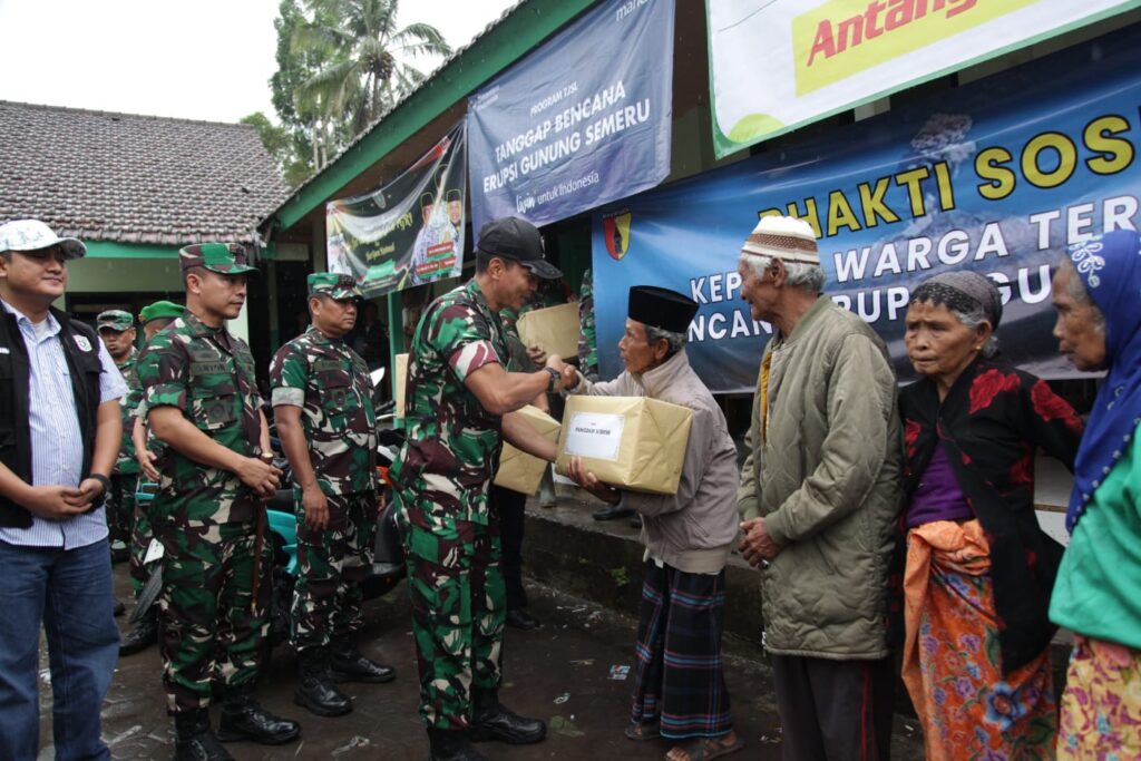 Selain meninjau kondisi masyarakat, di lokasi itu pula Kasdam juga melakukan penyerahan bantuan secara simbolis kepada warga terdampak erupsi Gunung Semeru.