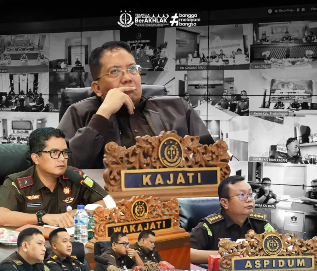 SURABAYA, Selasa 18 November 2025  Kepala Kejaksaan Tinggi Jawa Timur, Dr. Kuntadi, S.H., M.H., bersama Wakajati, Aspidum, para Koordinator, Pejabat Eselon IV, serta Jaksa Fungsional pada Bidang Tindak Pidana Umum mengikuti pengarahan secara daring dari Jaksa Agung Muda Tindak Pidana Umum (Jampidum), Prof. Dr. Asep Nana Mulyana, S.H., M.Hum., Selasa (18/11/2025).