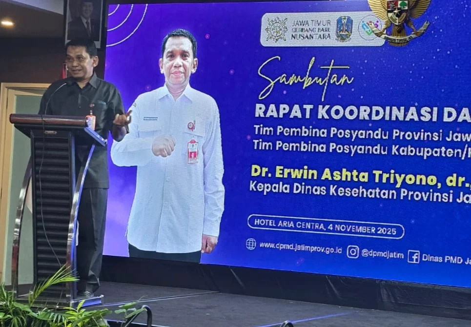 SURABAYA, 6 NOVEMBER 2025 – Kepala Dinas Kesehatan Provinsi Jawa Timur, Erwin Astha Triyono, menegaskan bahwa Posyandu menjadi garda terdepan deteksi dini kesehatan masyarakat sekaligus jembatan strategis antara pemerintah dan warga dalam mewujudkan Generasi Emas Jawa Timur 2045 yang sehat dan berdaya.
