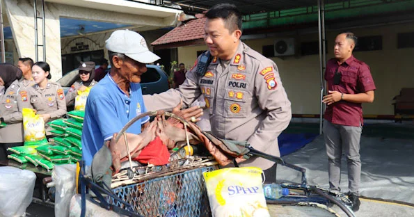 Polisi Peduli: Kapolres Mojokerto Kota Silaturahmi Salurkan Bantuan Sosial untuk Ojol dan Tukang Becak