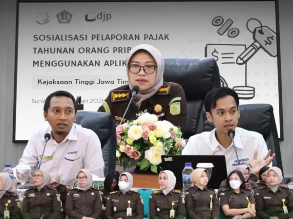SURABAYA, Selasa 20 Januari 2026 – Kejaksaan Tinggi Jawa Timur bekerja sama dengan Kantor Pelayanan Pajak Pratama Surabaya Wonocolo menggelar sosialisasi Coretax dan pelaporan SPT Tahunan Orang Pribadi yang diikuti para