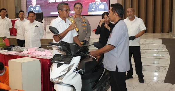 Surabaya, 07 November 2025 – Direktorat Reserse Kriminal Umum (Ditreskrimum) Polda Jawa Timur menyerahkan kembali satu unit sepeda motor Honda Beat hasil pengungkapan kasus pencurian kendaraan bermotor dalam Operasi Sikat Semeru 2025.