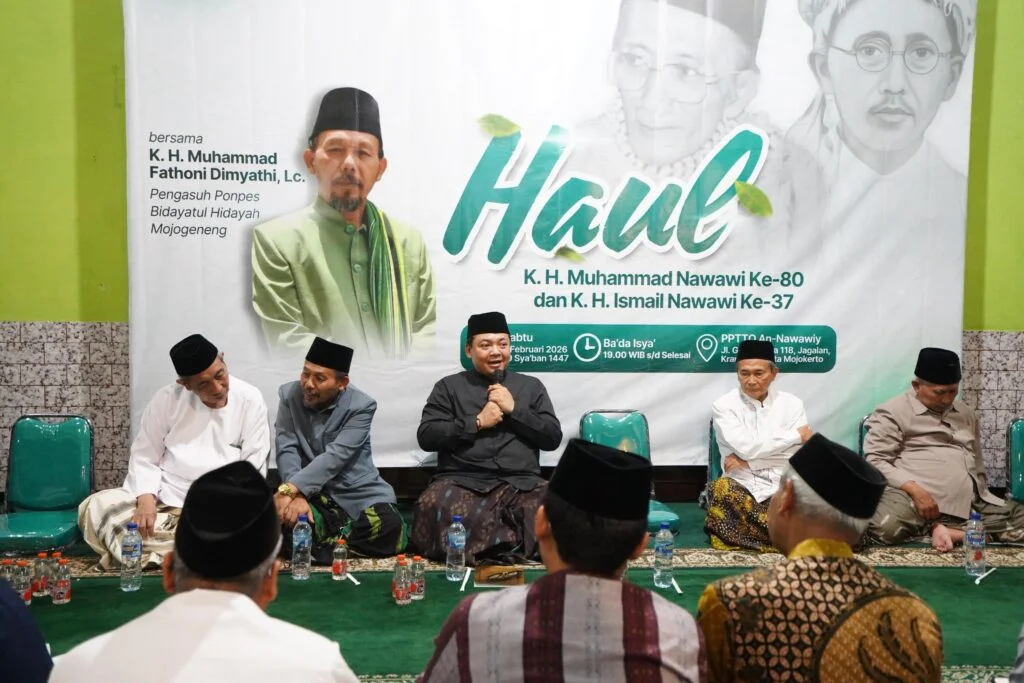 MOJOKERTO, 9 Februari 2026 – Wakil Wali Kota Mojokerto Rachman Sidharta Arisandi mengajak masyarakat untuk meneladani nilai perjuangan para ulama dengan menghadirkannya dalam kerja nyata, bukan sekadar mengenang nama dan sejarah. Hal tersebut disampaikannya saat menghadiri Haul ke-80 KH Muhammad Nawawi dan Haul ke-37 KH Ismail Nawawi di PPTQ An-Nawawi, Jalan Gajah Mada, Kota Mojokerto, Sabtu (7/2) malam.
